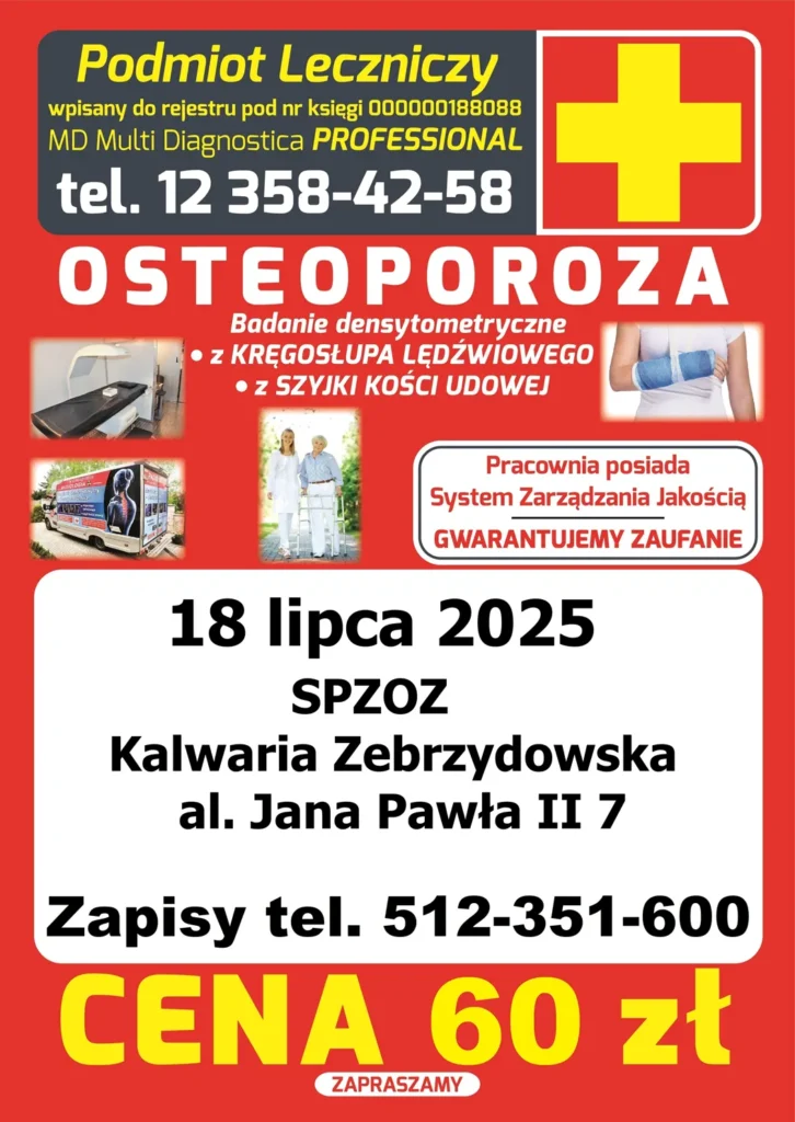 Zapraszamy na badania 18 lipca 2025 – SPZOZ Kalwaria Zebrzydowska al. Jana Pawła II 7