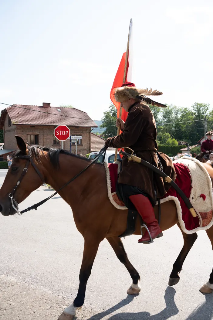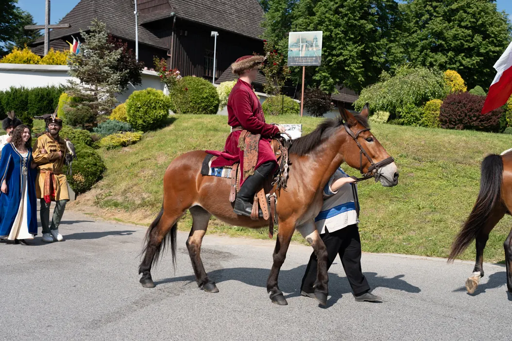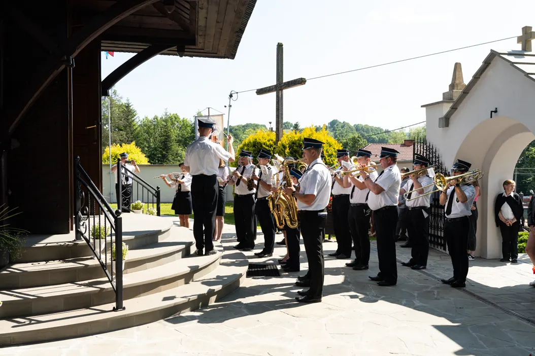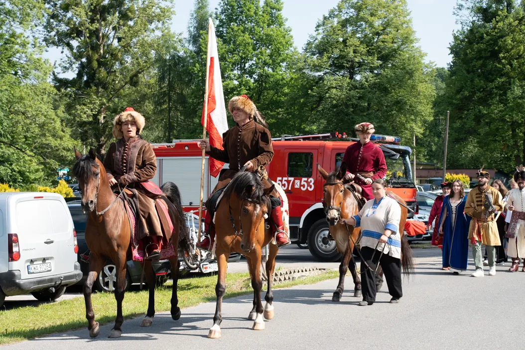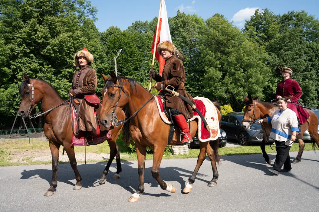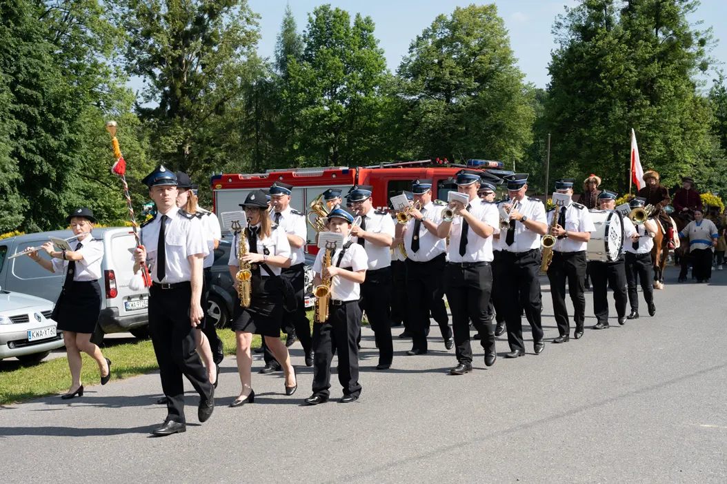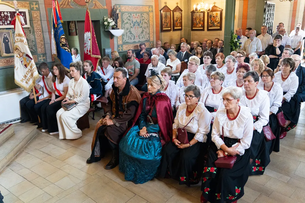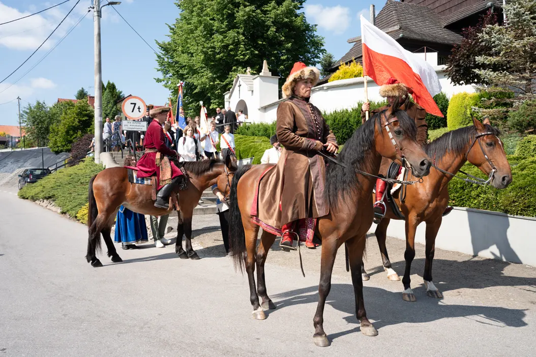 Uroczystości rozpoczęły się od mszy świętej odprawionej w zabytkowym kościele pw. św. Erazma – jednej z najcenniejszych świątyń drewnianych regionu. Po nabożeństwie uczestnicy przemaszerowali na plac przy plebanii, prowadzeni przez Orkiestrę Ochotniczej Straży Pożarnej z Kleczy oraz grupę rekonstrukcyjną „Konna Husaria”. Ten symboliczny pochód nadał obchodom podniosłego charakteru, podkreślając historyczną wagę jubileuszu.