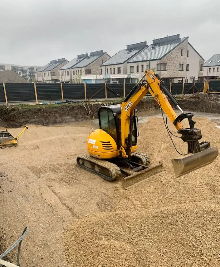 - Wykopy pod budynki, niwelacje terenu, wjazdy, drogi dojazdowe