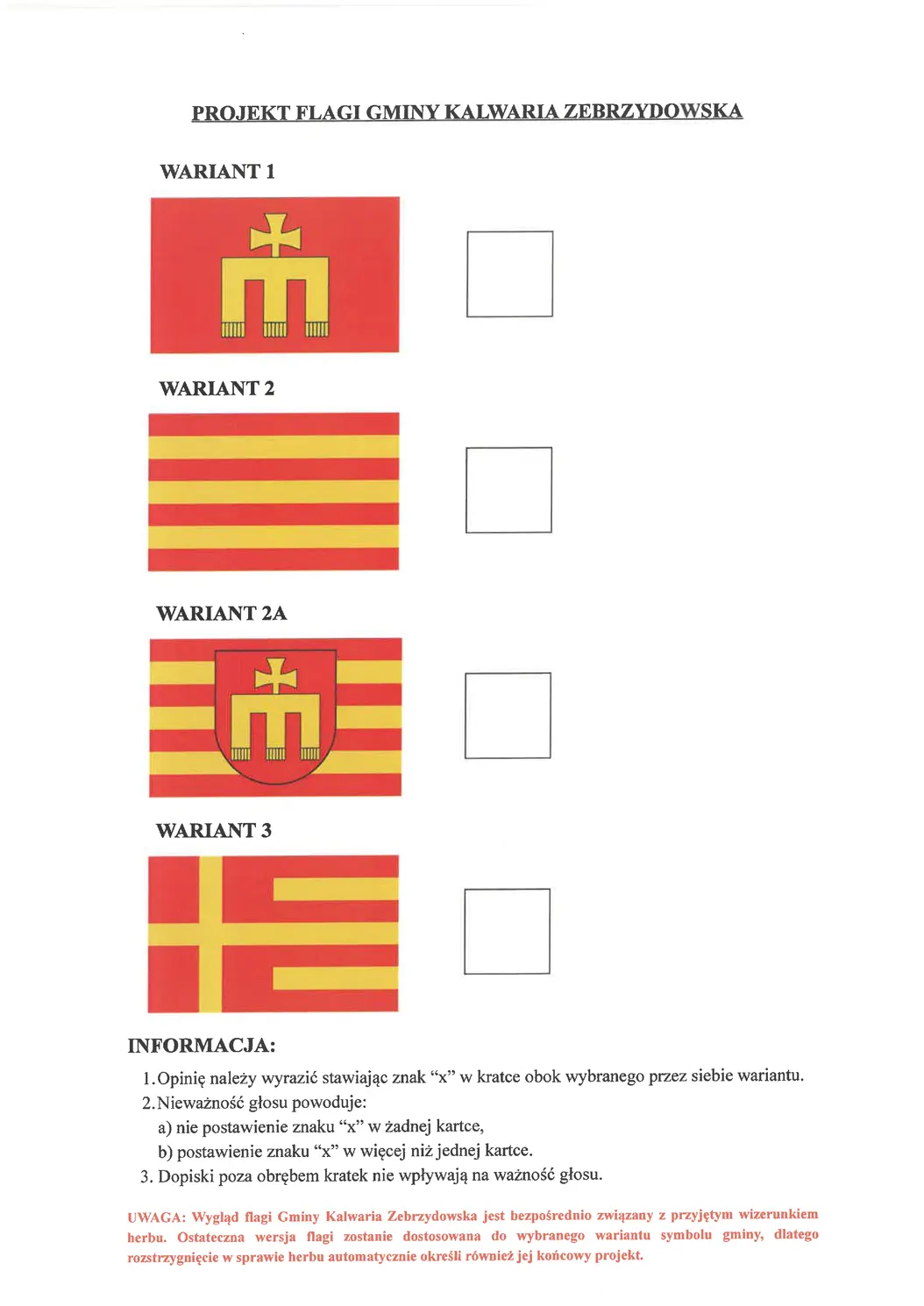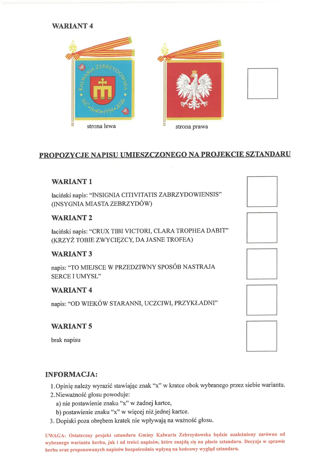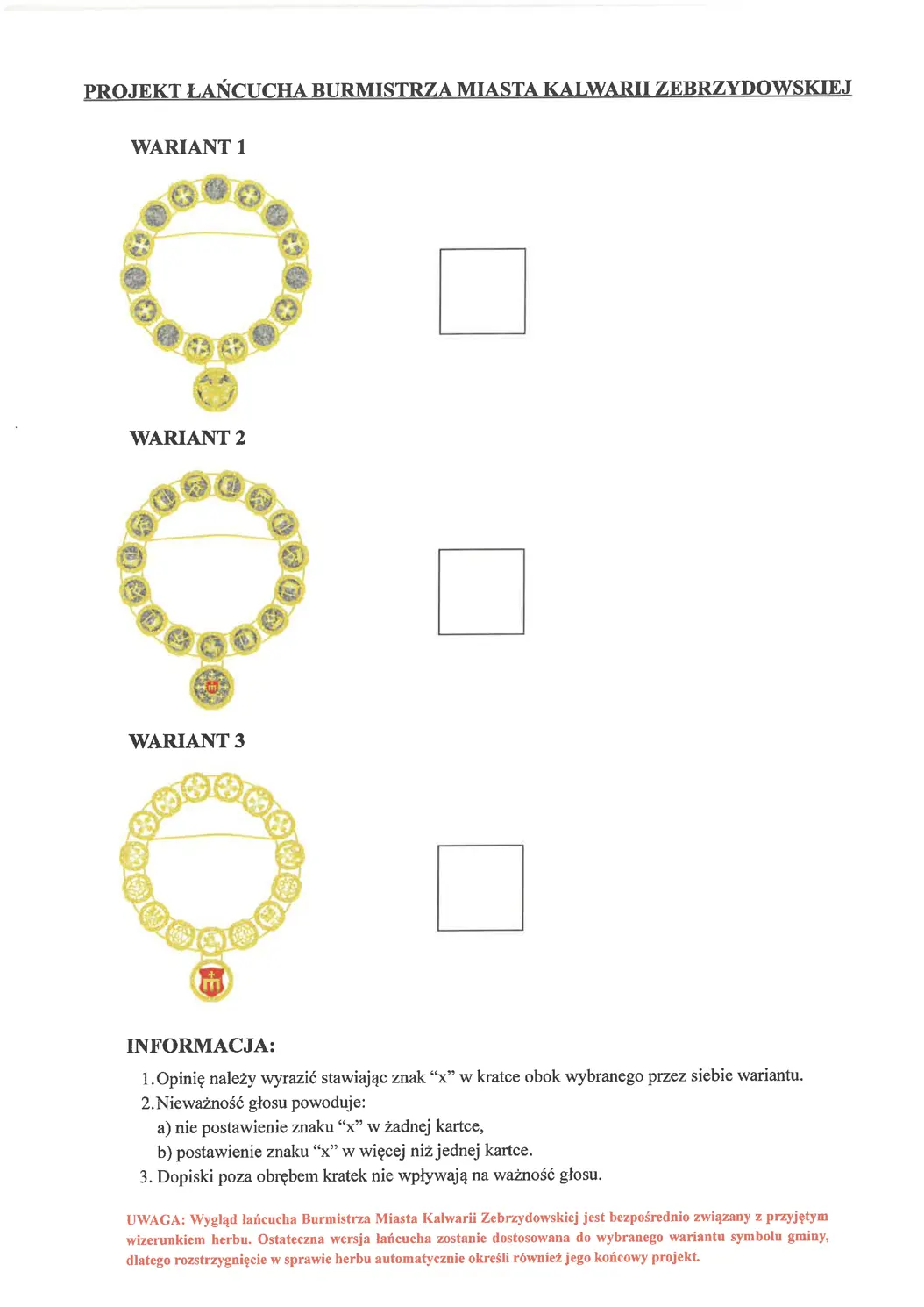 Wypełnione formularze należy wrzucać do urny opisanej: „Konsultacje społeczne dotyczące wyboru projektów symboli heraldycznych Gminy Kalwaria Zebrzydowska”, ustawionej przy wyjściu z Urzędu Miasta.