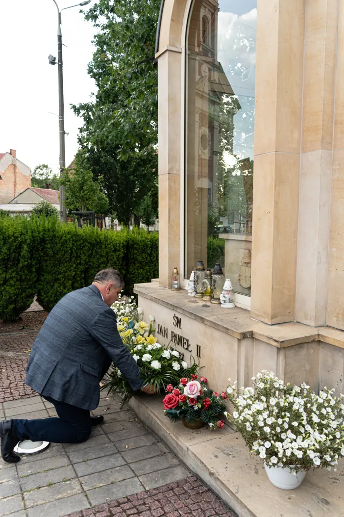 W imieniu samorządu oraz mieszkańców hołd Świętemu złożył Burmistrz Miasta Kalwarii Zebrzydowskiej – Tadeusz Stela, składając kwiaty pod pomnikiem św. Jana Pawła II. Papieża, który pozostaje duchowym opiekunem Kalwarii i niezłomnym wzorem wiary, miłości i oddania drugiemu człowiekowi.
