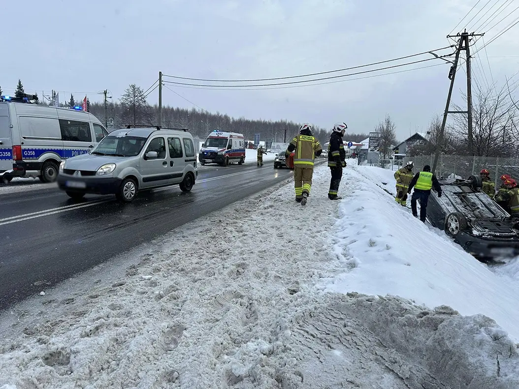 Po dachowaniu na krajówce w Brodach interweniował śmigłowiec LPR – 8 stycznia 2023 r. – fot OSP Brody