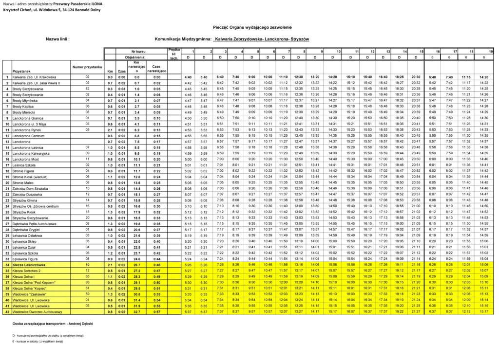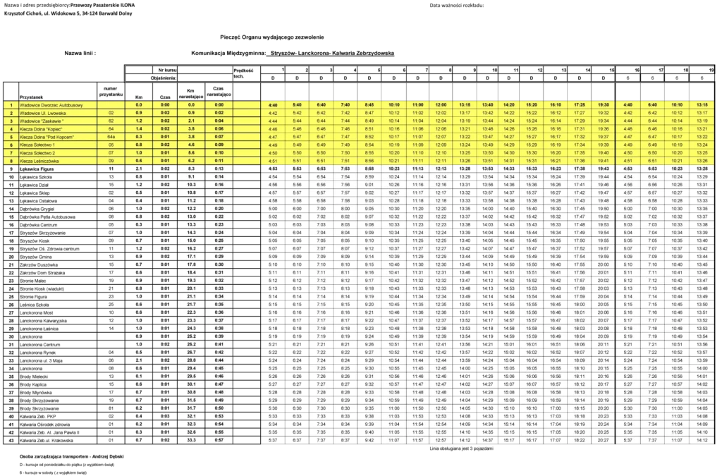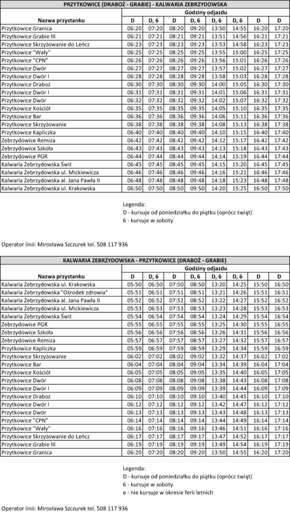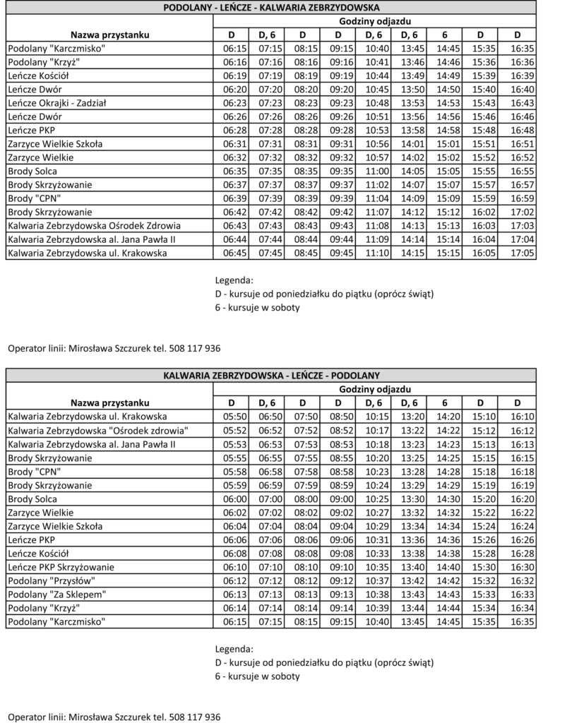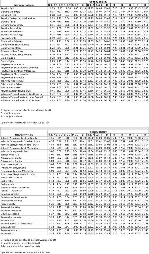 Linie obsługiwane przez operatora Mirosława Szczurek: