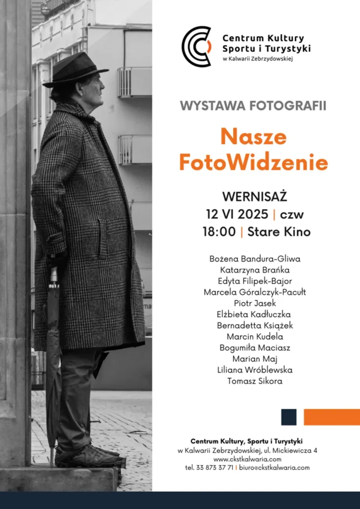 Zapraszamy serdecznie na otwarcie wystawy „Nasze FotoWidzenia”, która jest owocem sezonu 2024/2025 zajęć fotograficznych „Fotograficzne Środy” w Centrum Kultury. Podczas tego wyjątkowego wydarzenia będziecie mieli okazję podziwiać prace następujących artystów: